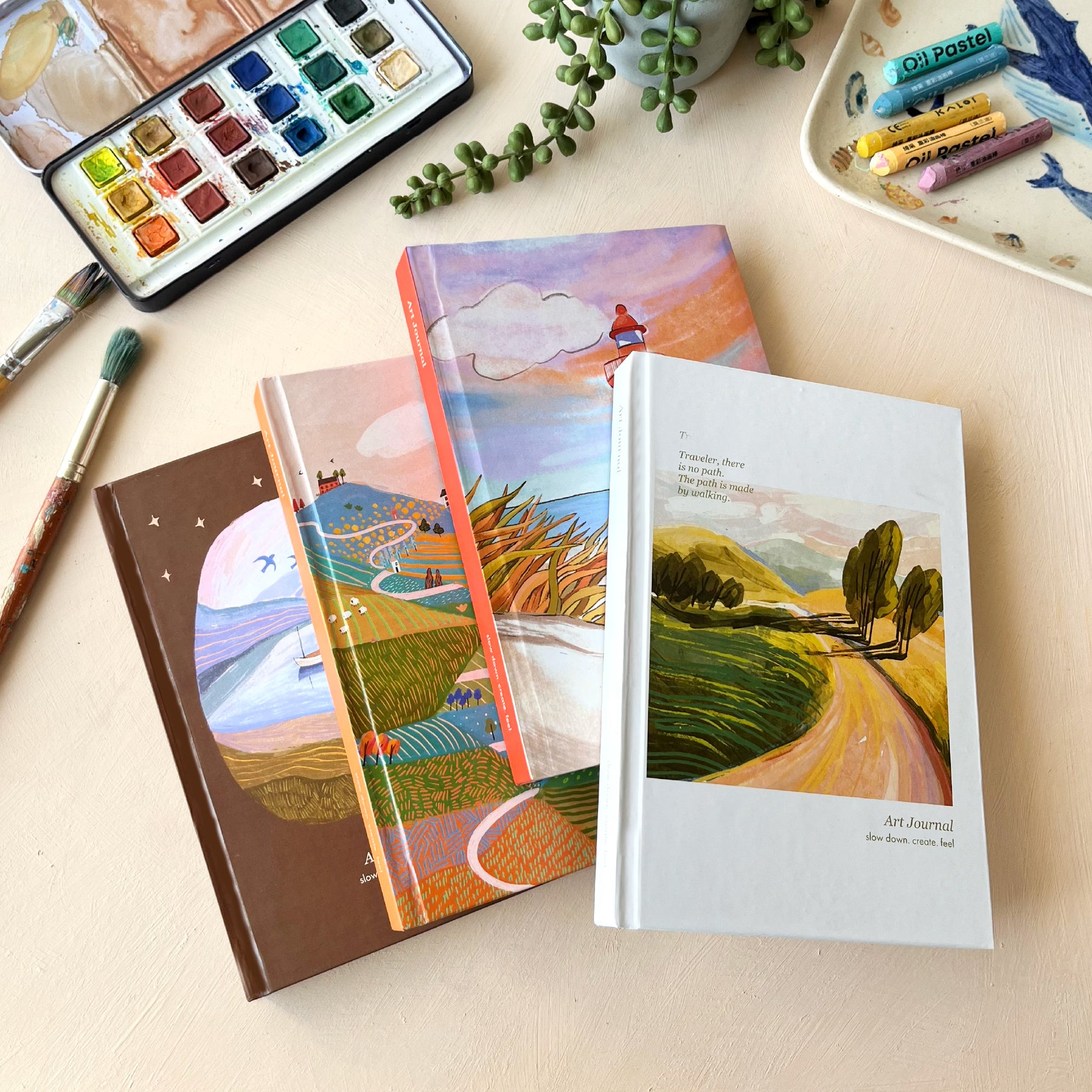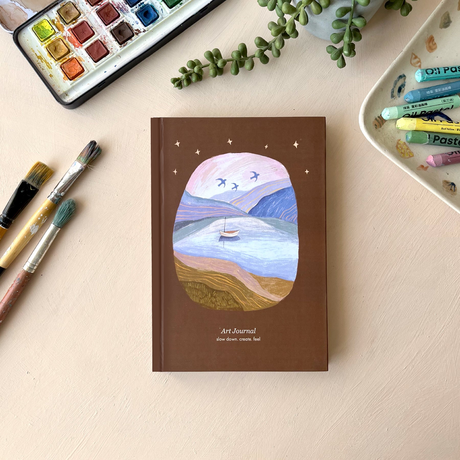 This art journal is a hardbound sketchbook designed for artists, thinkers, and anyone who feels most like themselves when creating. The pages feature 240 gsm watercolour-textured paper , substantial enough for layering, responsive enough for detail. The surface holds pigment beautifully while allowing freedom of movement across mediums.
