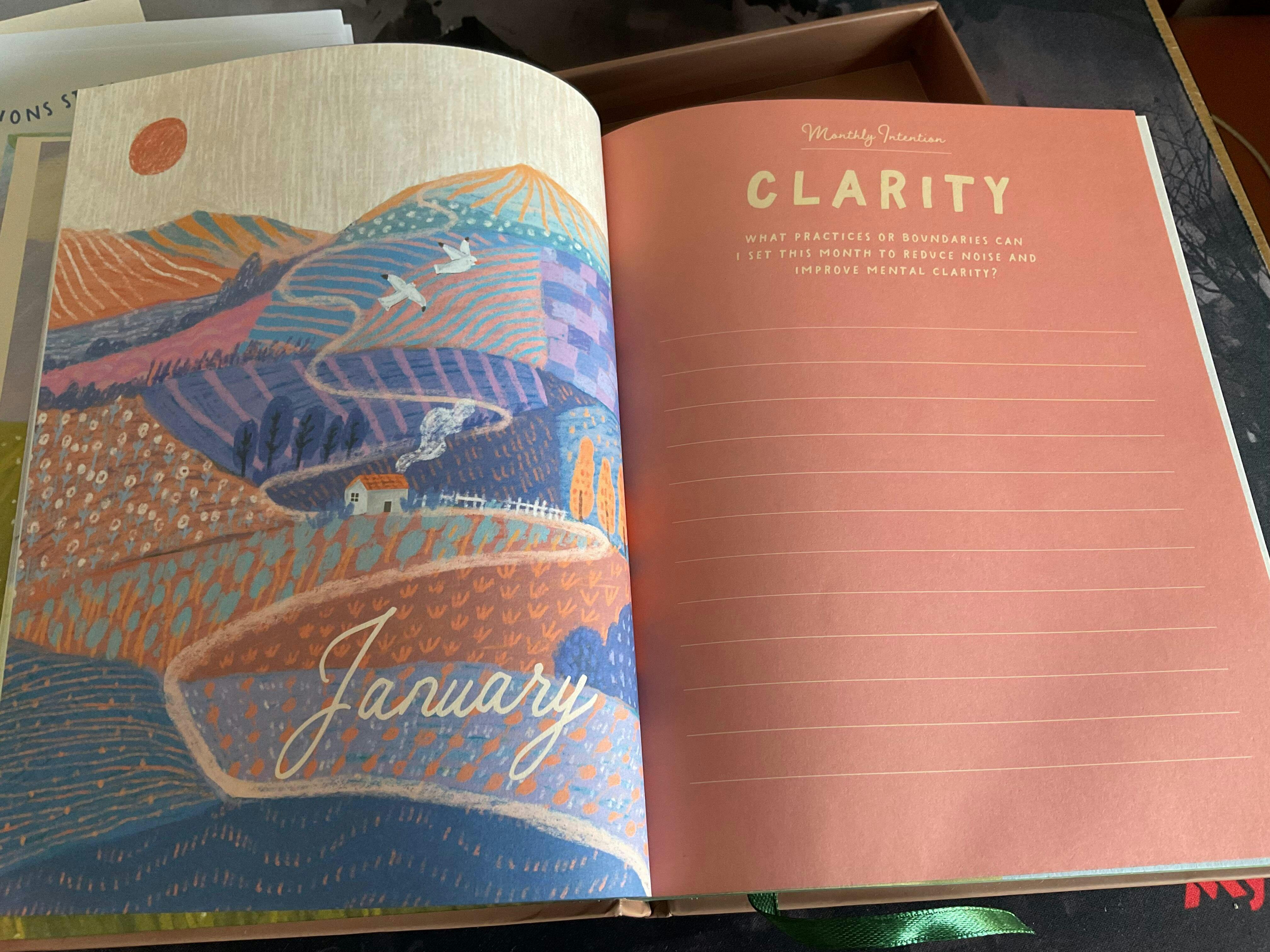 Each month opens with a new illustration and a theme of intention, from Curiosity to Courage, Growth to Gratitude, inviting you to pause, reflect, and reconnect with what truly matters.