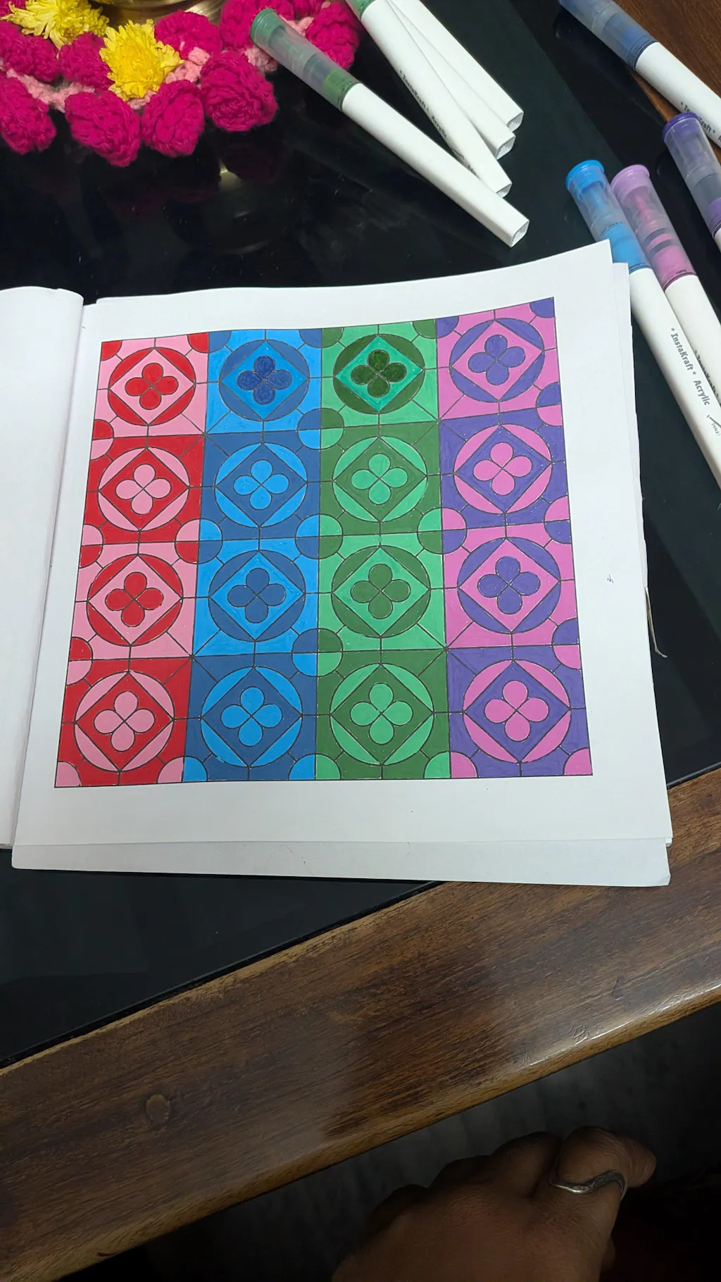 This is not about finishing quickly or colouring perfectly. It is about recalibrating your senses and training your mind to follow the pattern and find calm.