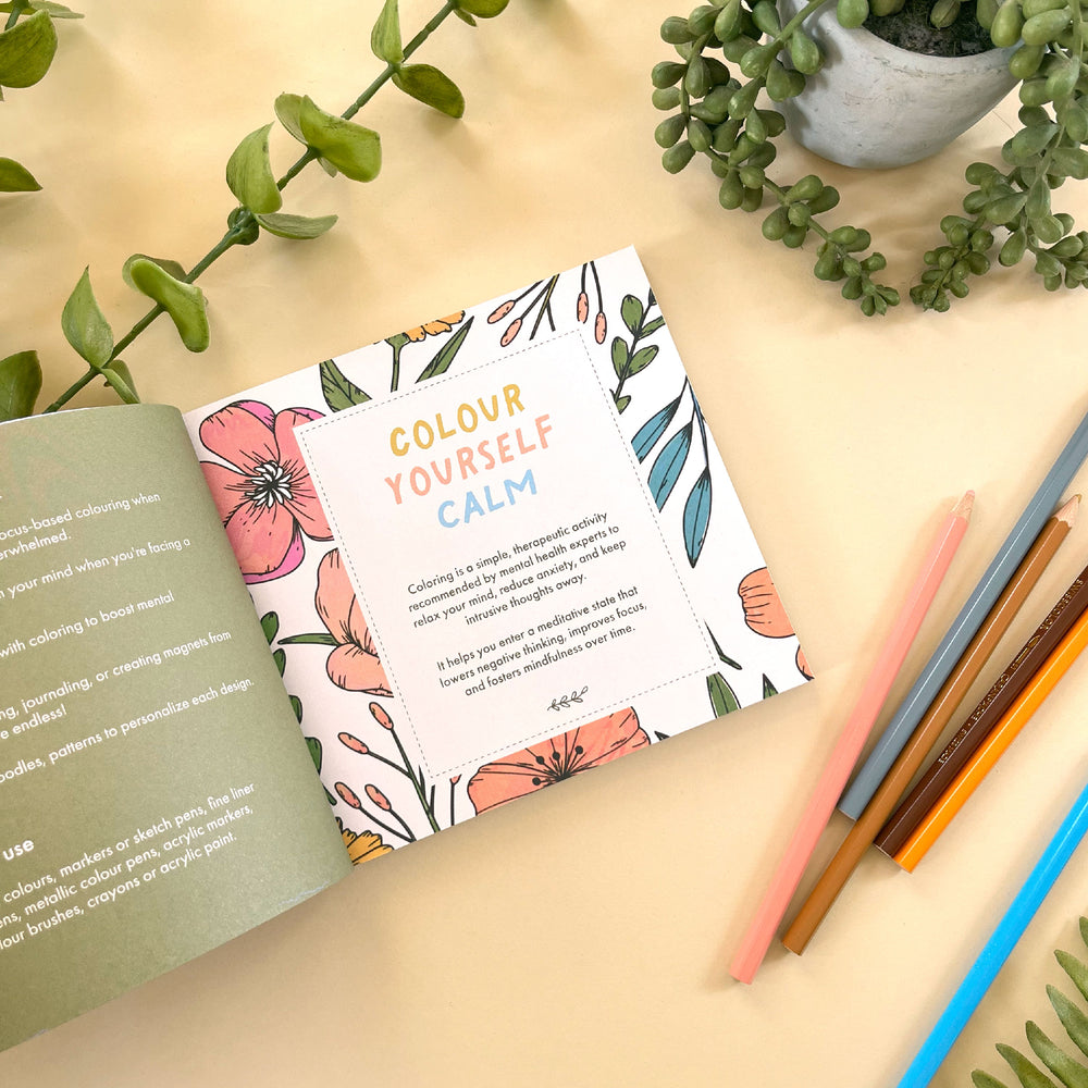 Other than being super cute, mini colouring books are perfect for short but impactful colouring sessions. When you are feeling overwhelmed or stressed out, busting out and starting on a very intricate design may feel intimidating. You may feel like you cannot spend hours colouring when you have so much else to do. With our Mini Colouring book, you can enjoy all the therapeutic benefits of colouring without the overwhelm. We think they are perfect for bite- sized moments of selfcare.